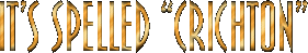 After reading post after post on the Sci-Fi Farscape Bulletin Board with the incorrect spelling for Crichton -- I've decided to help you out. Many of you are probably asking right now, "How hard can it be to misspell Crichton?" The answer is, it's not a matter of misspelling it but rather not knowing which spelling to use. Actually, there are many spellings for Crichton but in this particular case it's spelled "C r i c h t o n"! Click here to Submit A Misspelling! |